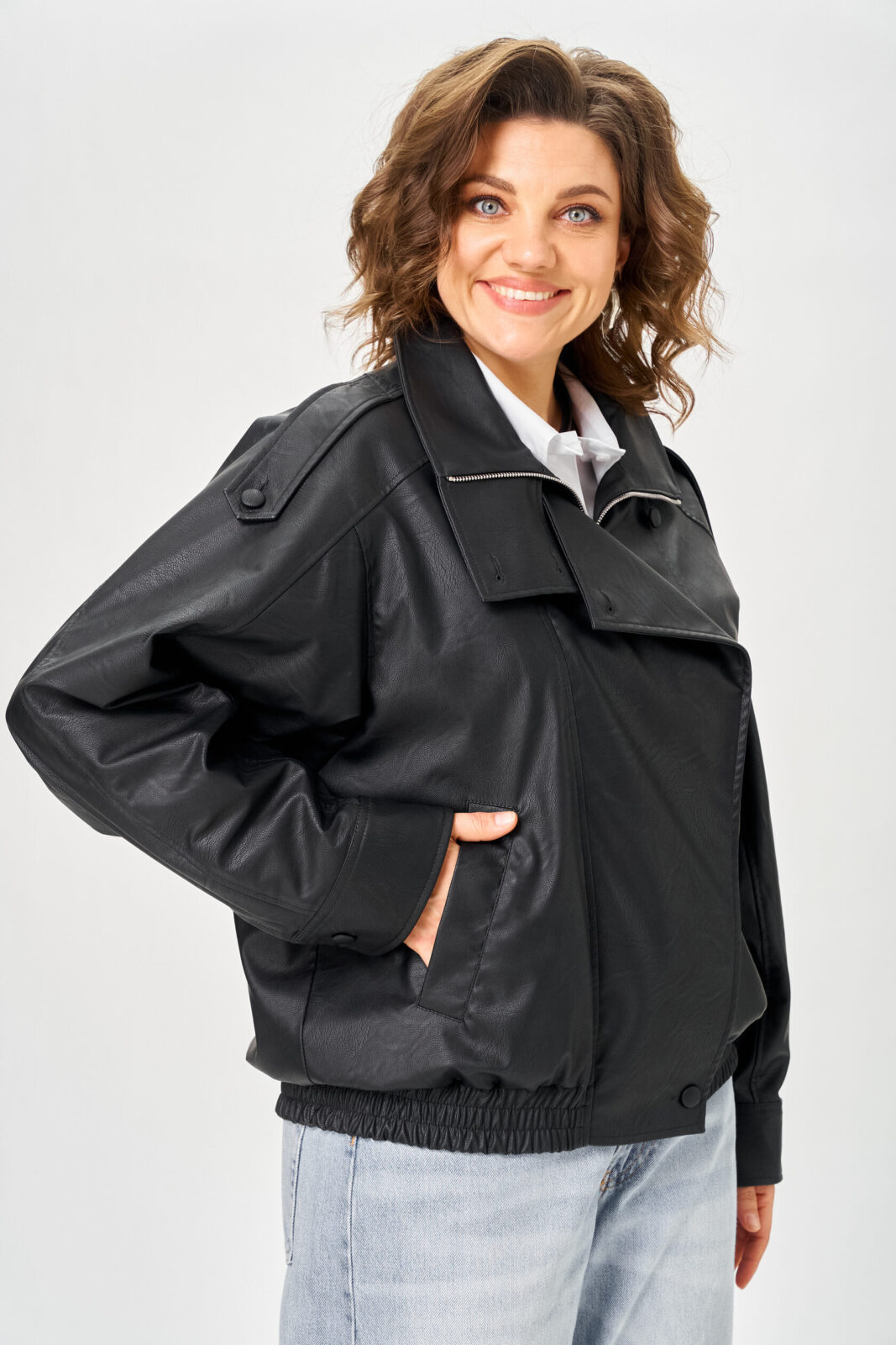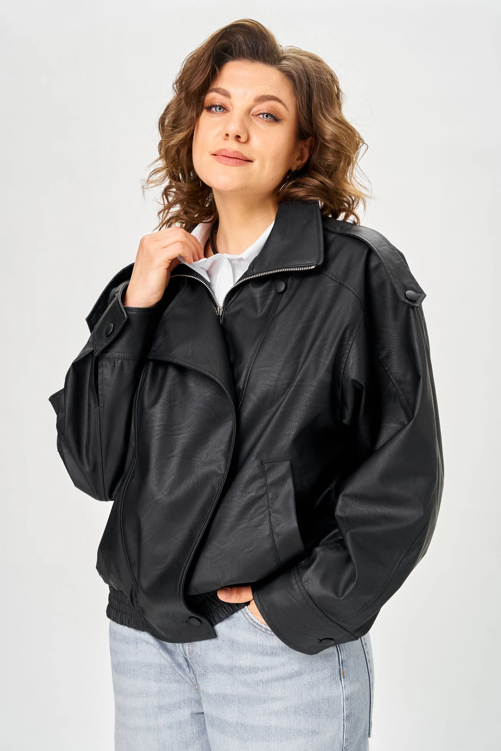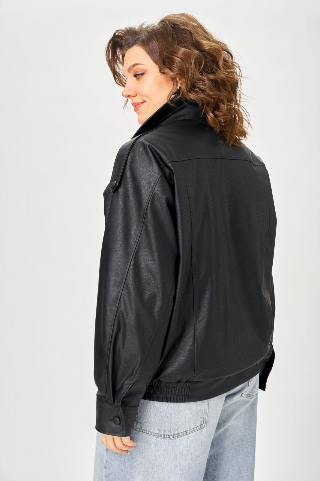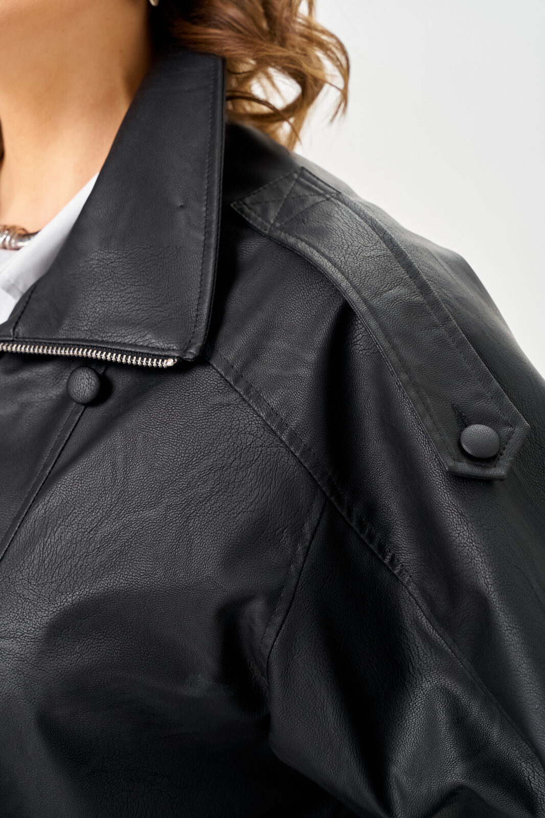 Стильная женская куртка oversize из экокожи. Модель дополнена центральной застёжкой на молнию и планкой на пуговицах. Вертикальные рельефы формируют силуэт, а отрезная кокетка на плечах с декоративными патами добавляет выразительности.