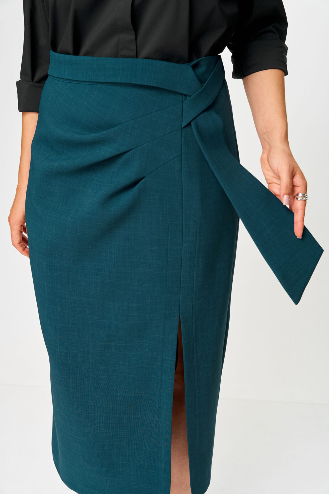 Эта юбка подходит как для офиса, так и для повседневной носки — универсальная база, которая работает в разных стилях.