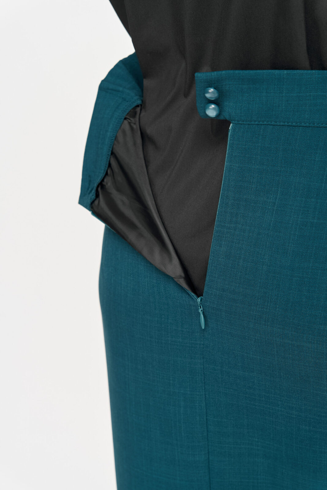 Модель 1146-2 выполнена из плотной костюмной ткани с добавлением эластана, благодаря чему она комфортно сидит по фигуре и сохраняет аккуратный внешний вид в течение дня.